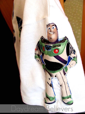 This is too cute! My nephew LOVES Buzz. He wears his Buzz t-shirts over and over again. My poor sister is doing laundry everyday. He will be 3 in April, maybe I will get creative. Thanks for the cute idea.
