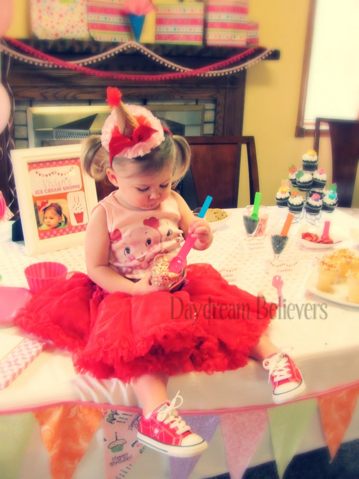 A REAL ice cream cone, Ruffles, Chiffon, and a big ol' Baby V* bow!