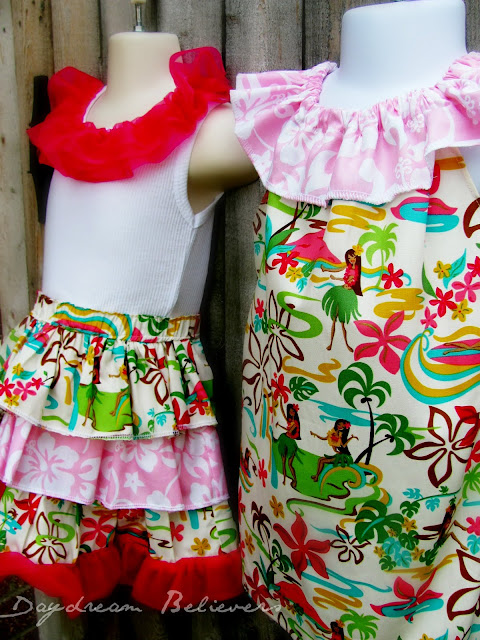 I recently made this adorable set of hula outfits for a set of sisters in Texas!