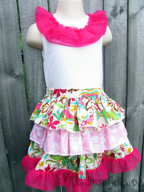 Big Sister's outfit coordinates perfectly; with a sweet chiffon ruffle tank