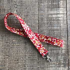 The lanyard will be made from cheery red with white, cranberry, and gold glitter confetti dots. I use four layers of 100% cotton fabric sandwiched with durable interfacing, for a piece that is durable, but still comfortable to wear. They measure inch wide and approximately 40 inches around making them about 20 inches long. Each lanyard is finished with a silver metal swivel clasp. A split key ring can be added if you’d like. $9.50